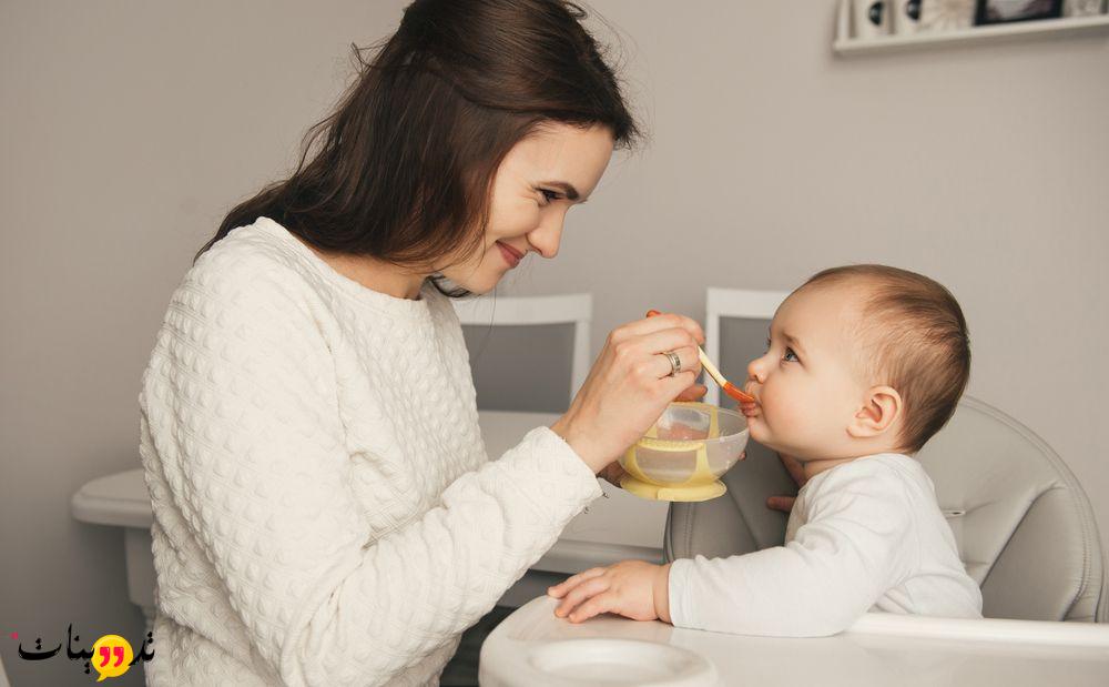 • الاهتمام باعطاء الطفل كميه ليس بالكبيره انما مناسبه لمعدته ، مع تكرار تقديم وجبات مماثله له علي مدار اليوم .