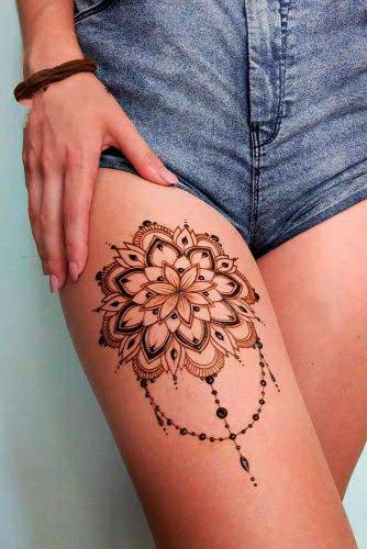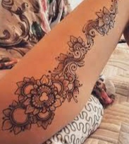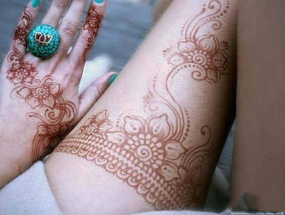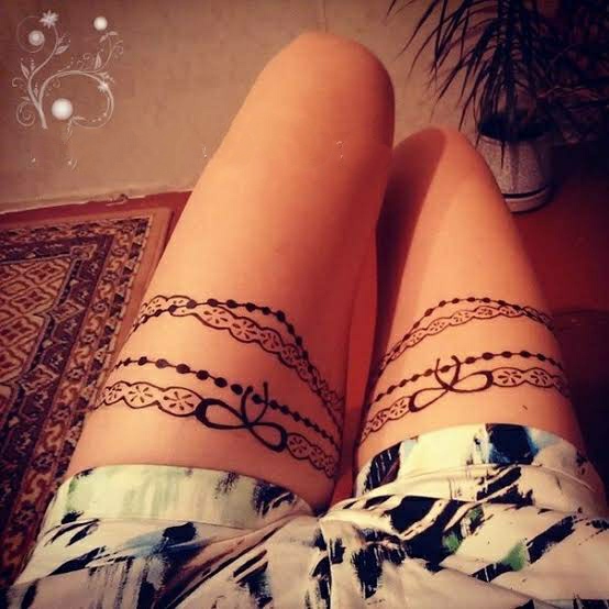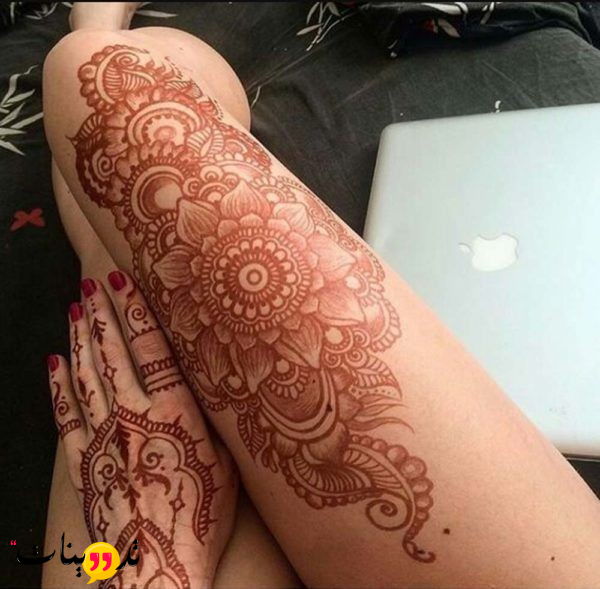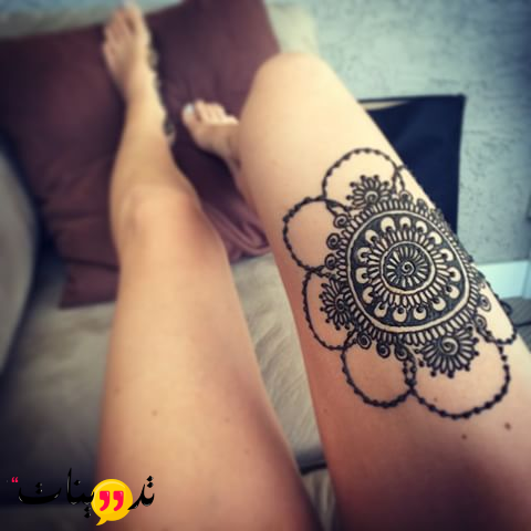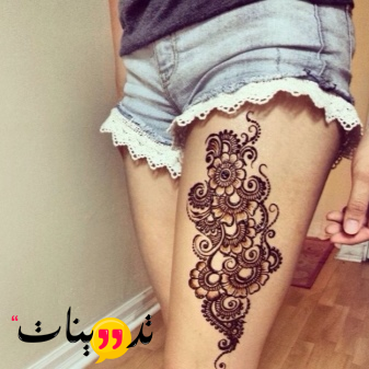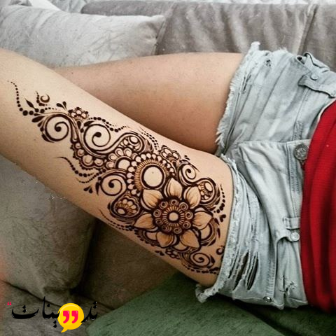 تعتمد هذه النقوش الرائعه علي نقش الحناء علي الفخذ بأشكال متنوعه و متجدده واصبحت من الاشياء التي لا غني عنها للنساء و الفتيات في جميع الاعمار لأنها تعتبر اكثر الاماكن اثاره في الجسم و تزيد من الانوثه بشكل رائع و انيق و يتناسب جميع الوان الحناء مع درجات البشره المختلفه .