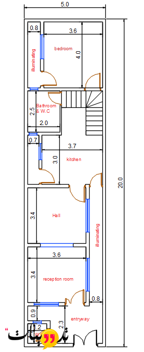 التصميم الاول لمنزل 5 * 20