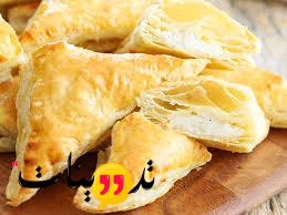 5. ثم بعد ذلك يمكنك العمل على طى أحد الجانبين على الأخرى و ذلك حتى تكون على شكل مثلث و يتم عمل كل العجين على نفس الطريقة السابقة.