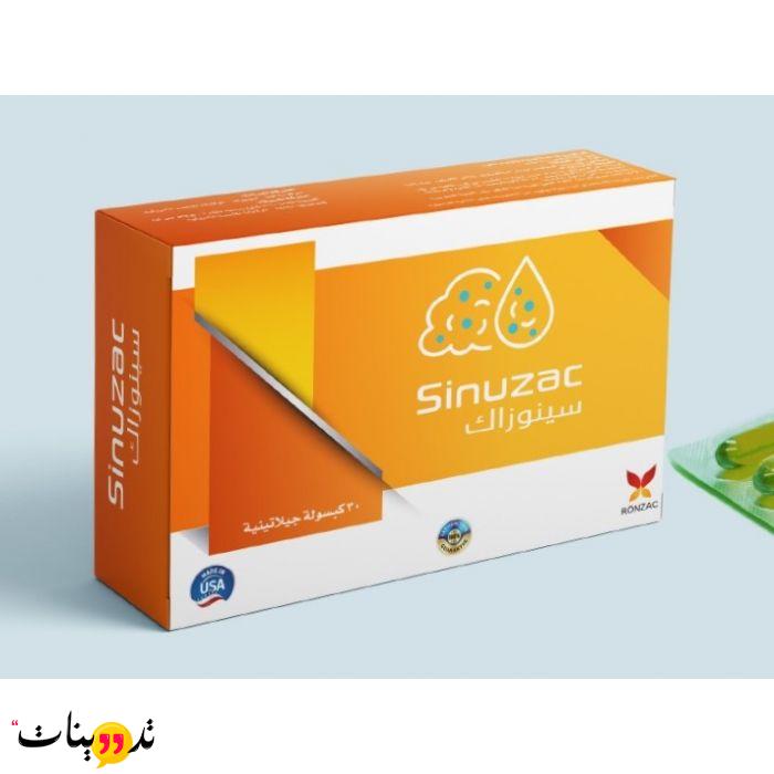 سينوزاك Sinuzac عبارة عن كبسولات جيلاتينية تستخدم فى علاج الكثر من الامراض التي تتعلق بالجهاز التنفسي واقوها فاعلية علي الاطلاق ومن اهم دواعي استعمال سينوزاك هي علاج حالات انسداد الجيوب الانفية وانسداد الانف المصاحبة لنزلات البرد والزكام كما يستخدم ايضا فى علاج الكثر من الامراض المرتبطة بالجهاز التنفسي مثل امراض الحساسية ونزلات البرد ودور الانلفوانزا والزكام وسيلان الانف .