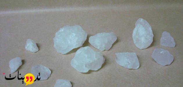 نبدا بتكسير قطعة الشبة الي حبيبات صغيرة وبعد ذلك نقوم بطحنها حتي تصبح مسحوق ناعم