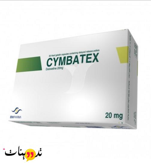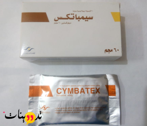 سيمباتكس Cymbatex عبارة عن اقراض جيلاتينية صلبة تحتوي علي المادة الفعالة هيدروكلوريد دولو كستين و من دواعي استعمال سيمباتكس حالات الاكتئاب الحادة والام الاعصاب بالجسم . ولان مادته الفعالة تعمل علي زيادة مستوي مادة النورادرينالين ومادة السيروتونين اللذان يساعدان فى تخفيف ألام الاعصاب وتخفيف الاكتئاب عن طريق تحسين الحالة المزاجية بالجهاز العصبي النورادرينالين بالاضافة الي وجود مادة سيبماتكس كعنصر اساسي من المكونات والتس تساعد فى تقليل الاثار السلبية لالام الاعصاب والتقليل ايضا من التقلبات المزاجية والنفسية المصاحبة للاكتئاب . ولا ينصح نهائيا باستعمال عقار سيمباتكس الا بعد الرجوع الي الطبيب والالتزام بالتعليمات والجرعة المحددة تجبا للتعرض لاي اثار جانبية قد يسببها استخدام اقراص سيمباتكس وسوف نقوم بتوضيح دواعي استعمال سيمباتكس واثاره الجانبية والجرعة الامنة والاضرار فيما يلي