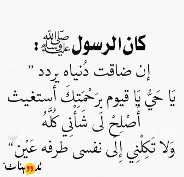 - كان الرسول (ص) اذا كرب يقول ياحي ياقيوم برحمتك استغيث اصلح لي شاني كله و لا تكلني الي نفسي طرفه عين .