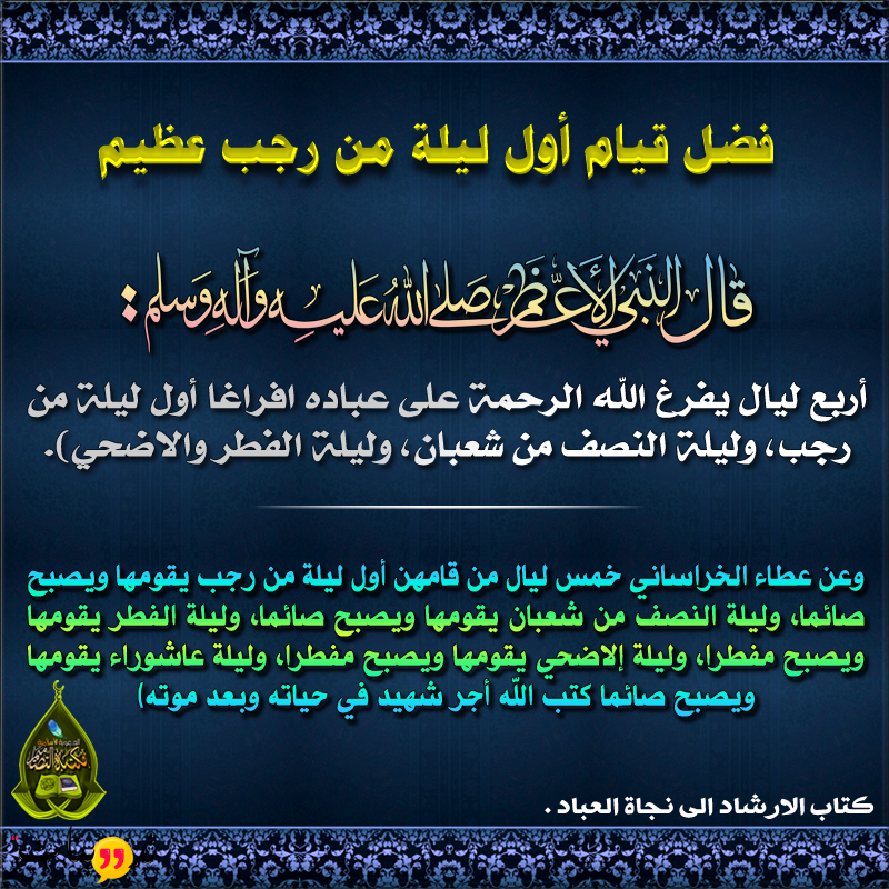 • يعتبر شهر رجب فرصه لاي شخص للتقرب من الله عز وجل و الابتعاد عن المعاصي و العادات السيئه و تهذيب النفس و الوصول الي أعلي قيمة من الايمان و التقوي و العمل الصالح .فضل قيام اول ليله في رجب هل رجب فضل علي غيره من الشهور فضل الصوم في رجب دعاء شهر رجب