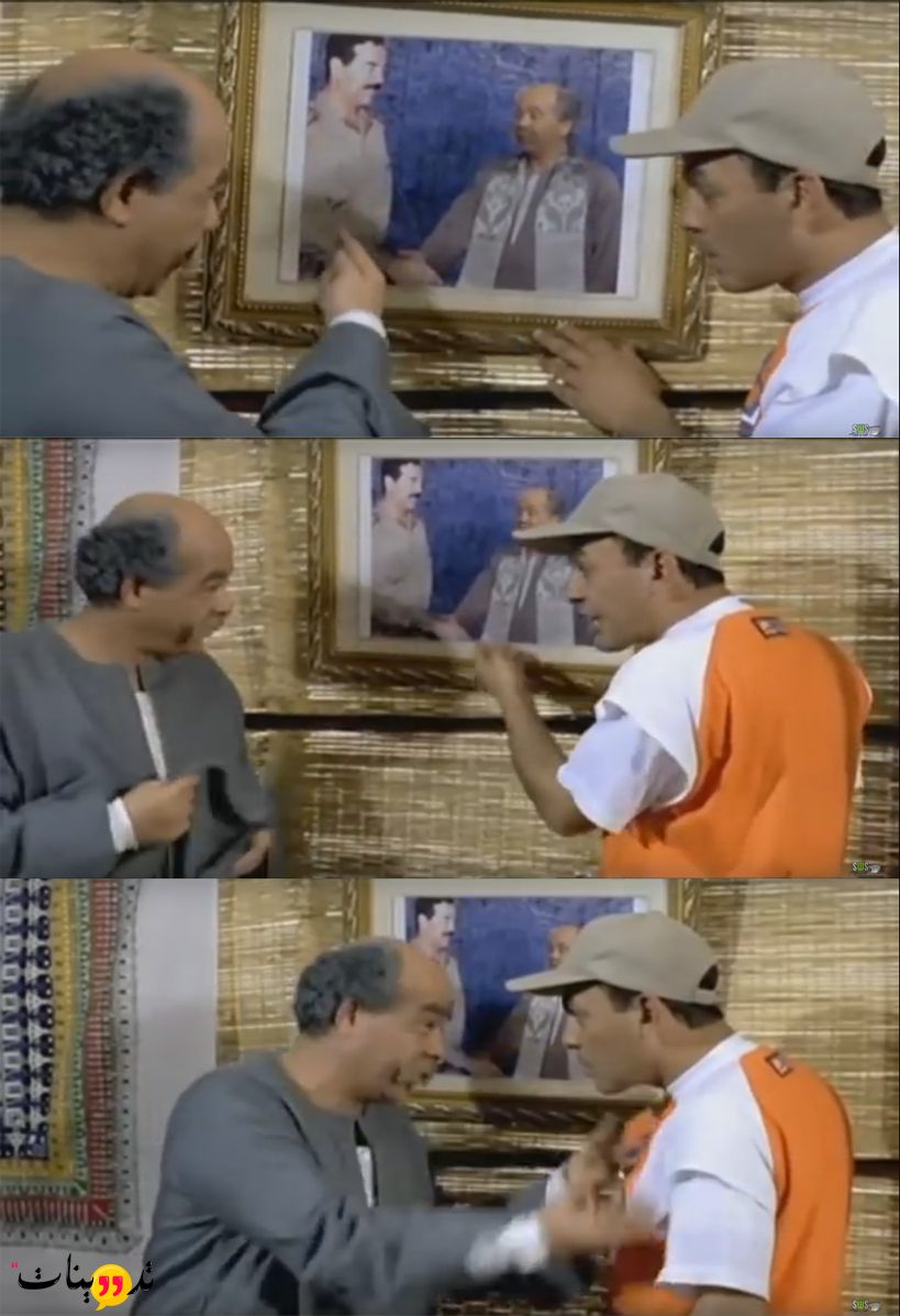 • و عند جلوسه على أحدى المقاهى يقول كلام عن الرئيس صدام و يتم أمساكه و أرساله الى أحد السجون و يقوم الغزو العراقى و يتم فتح جميع السجون بينما يسافر الى العراق من أجل البحث عنه فى الشوارع يجد المقر الرئيسى للرئيس صدام الهارب من الجيش الأمريكى و يدخل الجيش المكان