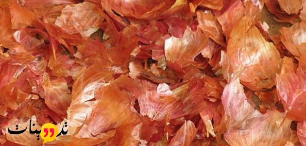 - حيث أن قشر البصل يحتوى على العديد من العناصر و المواد المغذية و التى تعمل على المساعدة فى تغذية الشعر جيدا و تخليصه من المشاكل التى تحدث فيه و تؤدى الى تلفه.