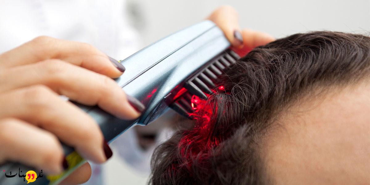 - يستخدم الليزر لزياده تواجد خلايا الكولاجين و الاكثار من انقسامها لتتجدد باستمرار و تظيد من كثافه و نمو الشعر .